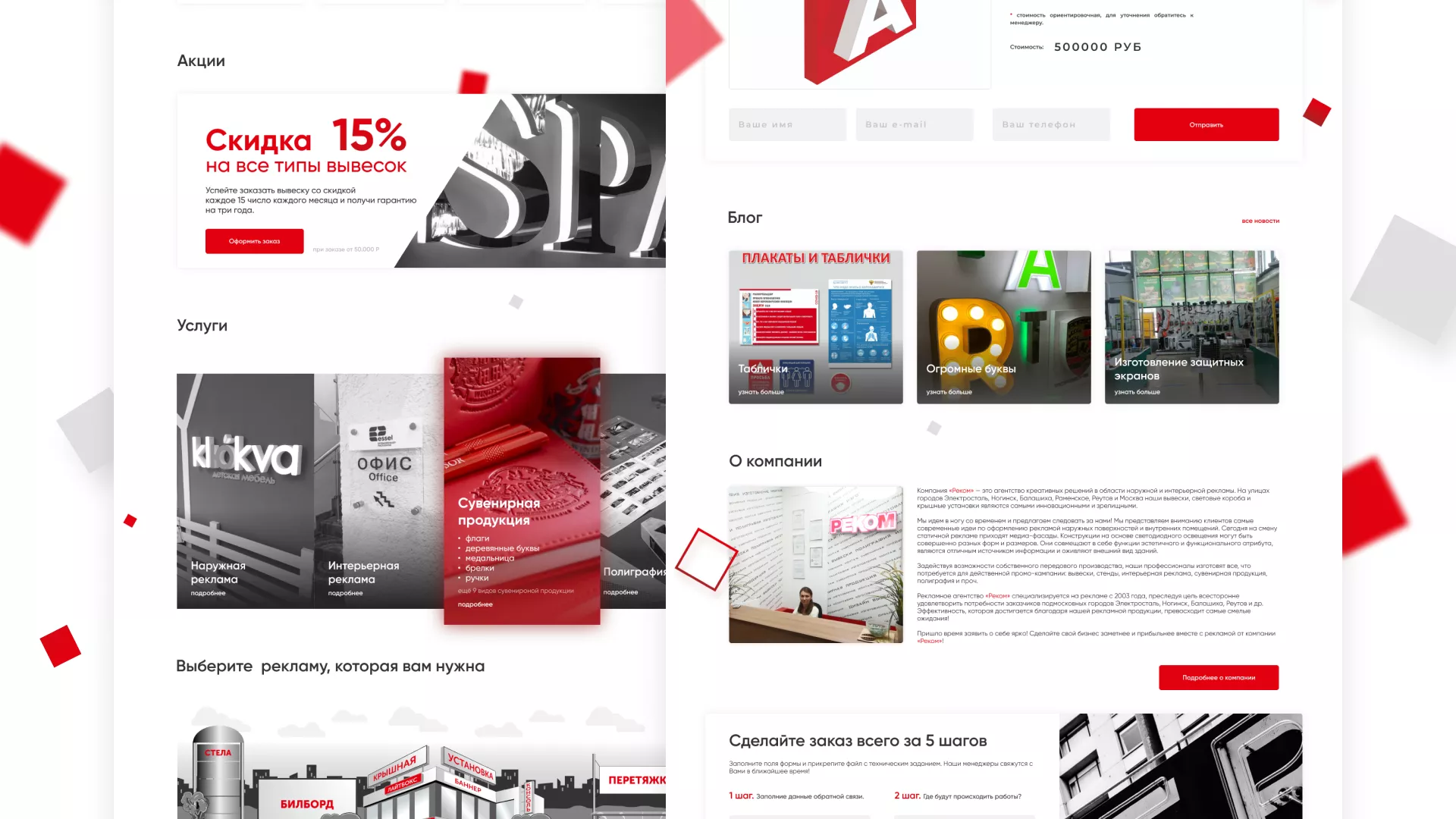 Стаж рекламно-производственной компании «РЕКОМ» — более 15 лет. Компания оказывает полный спектр услуг в Волосово по интерьерной и наружной рекламе, а также по широкоформатной печати и полиграфии.